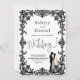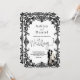 Diese elegante Schwarz-Weiß-Einladung eignet sich ideal für eine moderne Hochzeit. Das schlichte Design zeichnet sich durch eine elegante schwarze Kalligraphie, einen schicken schwarzen Rahmen und eine Braut- und Bräutigkleidung auf einem sauberen, weißen Hintergrund aus. Die Einladungskarte enthält die Hochzeitsdetails auf der Rückseite, anstatt für eine separate Kapselkarte zu bezahlen.