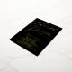Diese romantische Goldfolie und die schwarze Probe-Dinner-Beilage-Karte ist perfekt für eine einfache Hochzeitsreise-Probe. Das moderne klassische Design besticht durch extravagante Wirbel und skurrile Schnörkel mit herrlich eleganter, handgezeichneter Goldfolie, gepresst mit Typografie auf schwarzem Hintergrund.