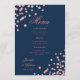 Romantische Script Wedding Confetti Rose Gold Navy Menükarte
