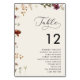 Romantische Script-Wildblumen Elfenbeinsitzdiagram Tischnummer