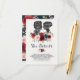 Charmante Hochzeitsdetails setzen eine Karte mit hübsch handgemalten Aquarellblumen in Bordeaux, Marine und Rot elegant kombiniert mit Vintagen Silhouetten von Elizabeth Bennet und Mr. Darcy, zwei der beliebtesten und ikonischen Figuren in der englischen Literatur, aus dem romantischen Roman "Pride and Prejudice" von Jane Austen. Jede Silhouette trägt romantische Zitate aus dem Roman, geschrieben in skurrilen Buchstaben. Verwenden Sie die Textfelder, um Ihre Angaben / Ihren Text hinzuzufügen, und klicken Sie auf die Schaltfläche "Weitere Einstellungen", um Elemente bei Bedarf neu zu ordnen.