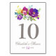 Tischnummer mit Blumenmuster mit hübschen lila und violetten Aquarellfarben-Blume. Personalisieren Sie jede Zahlenkarte und fügen Sie sie Ihrem Warenkorb individuell hinzu.