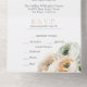 Diese romantische, blumengeschmückte Hochzeitseinladung zeichnet sich durch ein durchgängiges Design mit einer am Ende enthaltenen R.S.V.P.-Karte aus. Der Hintergrund ist schlicht und elegant, mit Aquarellfarben-Ranunculus-Blume. Ein zarter Strauß aus pfirsichfarbenem und elfenbeinfarbenem Ranunculus wird auf der Vorderklappe abgebildet, zwei auf der Innenseite.
