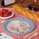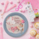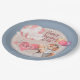 Diese individuell gestaltete Valentinstag-Party-Platte bietet ein niedliches, romantisches Fuchs-Aquarellmotiv. Zwei skurrile Füchse der Liebe werden unten rechts beim Küssen abgebildet. Ein niedlicher kleiner Hase schwebt in einem Heißluftballon davon. Ein individuelle Name wird auf einem rosafarbenen Herz in der Unterseite auf einem staubblauen Hintergrund verlassen.