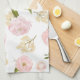 Elegantes und skurriles Küchentuch mit rosafarbenen Pfannkuchen, Rose und Blumenakzenten. Dieses Blumenmuster Handtuch wird perfekt als Akzent Ihrer Küche.
