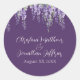 Diese romantischen floralen Hochzeitsaufkleber sind mit einem dunklen lila Aquarell lila Wisteria-Blume. Auf dem Gipfel wird ein zarter Wein aus Wisteria und Grün abgebildet.
