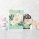 Die Aquarellmalerei zeichnet sich durch ein aufwändiges Blumendesign in Weiß-, Rosa- und Salbei-Grün-Farbtönen aus, das mit einem goldenen Imitat unterlegt ist. Sein traumhafter und boho-schicker Stil strahlt Raffinesse und Weiblichkeit aus und macht ihn zu einer perfekten Ergänzung zu besonderen Festlichkeiten.