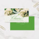 Romantische Hochzeitsgetränkkarte mit weißen Rosen und grünem Schriftart.