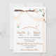Weich, romantisch und eklektisch bietet diese Hochzeitseinladung einen Zweig, der mit einem blassen, blassfarbenen Schmetterlingsmaterial mit winzigen Glaskeramiklampen aus dem Zweig gespannt ist. Die Schriftart sind eine Mischung aus Moderne und Kalligraphie in mittlerem Grau und Butterscotch.