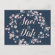 Romantische Hochzeit mit Blumen Save the Date Postkarten mit schönem rosa Blumenkranz und anpassbarem Text - Sie können Text ändern, auf weißem Hintergrund gedruckt
