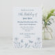 Einzigartige Einladung zum Geburtstag mit romantischen und eleganten dustigen blauen Blumen auf hellblauem Hintergrund. Für weitere Produkte klicken Sie auf die obige Kollektion oder kontaktieren Sie mich.