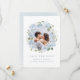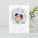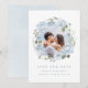 Romantische Wasserfarbe Blumen in staubigem Blau und Salbei-Grün mit Paarfoto, elegant und romantisch, großartig für moderne Hochzeiten, romantische Hochzeiten und botanische Gartenhochzeiten im Frühling, Sommer und Winter.