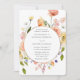 Eine schöne Hochzeitseinladung mit einem zarten Aquarell-Blumenkranz mit pastellfarbenen Blumen. Die sanften Farben und die elegante Schrift schaffen ein romantisches und zeitloses Design, perfekt zum Feiern.