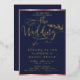 Dieses Design mit luxuriösen Goldfolien-Akzenten und einer tiefen blauen Marinebrücke verbindet klassische Eleganz mit moderner Romantik. Diese Einladung eignet sich perfekt für feierliche Hochzeiten, Veranstaltungen mit schwarzer Krawatte oder Abend-Zeremonien. Sie können Ihre Namen, Termine und Hochzeitsdetails ganz nach Ihren Wünschen anpassen, um Ihre einzigartige Liebe widerzuspiegeln.