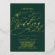 Diese romantische Goldfolie Smaragdrahmen Hochzeitseinladung ist perfekt für eine einfache Hochzeit. Das moderne klassische Design besticht durch extravagante Wirbel und skurrile Schnörkel mit prächtiger, eleganter, handgeschriebener, vergoldeter Typografie und einem formalen Folienrahmen auf dunkelgrünem Hintergrund.