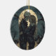 Gotische, romantische Illustration einer Frau, die ein Skelett mit dem Vollmond hinter sich hat.