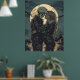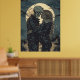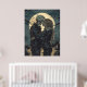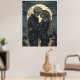 Gotische, romantische Illustration einer Frau, die ein Skelett mit dem Vollmond hinter sich hat.