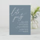 Mit unserer romantischen zeitgenössischen, blauen Hochzeitsfeier nach dem Brunch Lunch Dinner Party mit der Einladungskarte "Let's Party" können Sie sich für immer mit Eleganz anfreunden. Diese Einladung eignet sich perfekt für Paare, die ihren fröhlichen Anlass ausdehnen und mit einem Hauch von Verspieltheit die Bühne für eine unvergessliche Veranstaltung geben. Mit einem zeitlosen, modernen Design-Design-Thema, fügt es eine Touch raffinierten Charme zu Ihren Festlichkeiten, verspricht diese Einladung, Ihre Liebe zu erfassen schön.