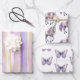 Romantischer Lavendel Weißes Pferd Streifen Geburt Geschenkpapier Set