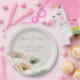 Diese romantischen Party-Teller mit floralen sind mit einem eleganten Elfenbeinfarbenhintergrund und Aquarellfarben-Ranunculus-Blume ausgestattet. Ein zarter Bouquet aus pfirsichfarbenem und weißem Ranunculus wird unten abgebildet. Die Namen eines neu vermählten Ehepaares und das Hochzeitstermin sind oben gedruckt. Sie können die Teller so personalisieren, dass sie Ihre eigenen individuelle Namen oder Texte enthalten.