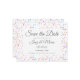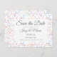 Romantische Rainbow Confetti Save the Date Card Persönlich mit Ihren Namen und Details in einem schönen Imitat silber Schriftart auf einem zarten Regenbogenkonfetti Hintergrund. Entwickelt von Thisisnotme©