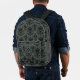 Dunkel Damaskus Muster Backpack mit Schädeln, blühenden Rose und Vintagem Viktorianischen Flair. Ideal zu Halloween oder zu jeder Gelegenheit, die eine wunderschöne Touch des Makabre fordert. Fügen Sie Ihre Initialen hinzu.