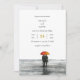 Erleben Sie das Wesen der Liebe an einem regnerischen Tag mit unserer Hochzeit "Minimal Rainy Day on the Coastline". Dieses elegante Design besticht durch eine minimalistische Szene, in der Regenstreifen den Horizont sanft verwischen und das graue Meer mit dem bewölkten Himmel vermischen. Die subtilen einfarbigen Töne der regnerischen Umgebung werden durch ein hübsches Paar, das unter einem farbenfrohen Schirm spaziert, wunderschön kontrastiert und der Szene einen strahlenden Glanz verleiht. Ideal für Paare, die die schlichte Eleganz und die Schönheit der Natur schätzen, bietet diese Einladung eine moderne und romantische Touch zu Ihrer Hochzeit am Strand. Vollständig anpassbar, erlaubt es Ihnen, Ihre persönlichen Daten zu ergänzen und sie einzigartig zu machen. Mit seinen klaren Linien und seiner ruhigen Atmosphäre lädt das Hotel die Sets zu einem unvergesslichen Hochzeitsfest an der Küste ein. Ideal für diejenigen, die die Idee einer Strandhochzeit mit einer Touch von regnerischer Tagesromantik Liebe, ist diese Einladung eine zeitlose Ergänzung zu Ihrem besonderen Tag.