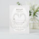 Schwäne schmücken die Vorderseite und Rückseite dieser Hochzeitskarte, die ein romantisches Aussehen verleiht. Hochzeitspaar Monogramme auf einer Seite. UAWG Details auf der anderen Seite der Karte. Die RSVP-Karte weist weiche Farbtöne in Weiß- und Dunkelsilber auf. Auch gut für besondere Anlässe. Fügen Sie Ihre Monogramme hinzu. Verwenden Sie die Vorlage, um Ihre eigene romantische schweizer Hochzeitskarte zu erstellen.