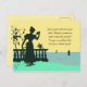 Individuell anpassbare eigene Vektorgrafik inspiriert durch eine Wende des Jahrhunderts (ca. 1900) litho postcard. Eine Dame schaut sich einen Brief an, während sie an den Seegrenzen stehend ist. Nur 4 Farben verwendet: hellgelb, blau und grün, und schwarz. Ideal für Liebhaber oder andere romantische Soule.