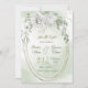 Romantische weiße Blume und grüne Blätter botanische ovale geometrische Rahmen Save the Date Einladung Die Glitzer Details simuliert