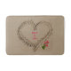 Schönes Foto eines von Hand gezeichnet Herzens im Sand. Personalisieren Sie mit Ihnen und dem Namen Ihres Liebsten. Die Einrichtung ist mit einer hübsch rosa Rosa dekoriert.