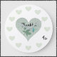 Charmante Uhr mit "Dankbar" in Schriftzeichen in der Mitte und "4 U" um 4 Uhr. Blau-grünes Herz und Blätter.