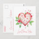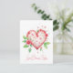 Diese hübsche Postkarte ist mit einem Herzen geschmückt, das von zarten rosa und roten Blume umgeben ist und von üppig grünen Blätter umgeben ist. Das elegante Drehbuch "Liebe Blooms Here" fügt eine Touch von Wärme und Zuneigung hinzu. Ideal für Hochzeiten, Jubiläen, Valentinstag, oder nur um den Tag eines Menschen zu heitern. Passen Sie den Text auf beiden Seiten an, um ihn einzigartig zu machen. Teilen Sie Ihre Liebe und Freude mit diesem charmanten Sake!