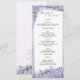 Diese elegante Hochzeitskarte ist wunderschön gestaltet mit zarten Aquarellblumen in lila und grauen Farbtönen, die einen Vintagen und zeitlosen Charme schaffen. Dieses Menü ist perfekt für romantische Empfänge und bietet Vorspeisen, Vorspeisen, Fleisch-, Huhn- oder Fischgerichte sowie ein dekadentes Hochzeitsdessert. Das antike Blumenwerk und die anmutige Typografie machen dieses Menü nicht nur zu einem funktionalen Restaurantführer, sondern auch zu einem Sake, der die gesamte Suite der Hochzeitsstation ergänzt. Mit seinem alten Wasserfarbendesign, den botanischen Details und dem raffinierten Design fügt diese Karte dem Hochzeitstisch eine schöne und raffinierte Note hinzu.