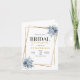 Blue Flowers Brautdusche Einladung mit Goldrahmen : Erleben Sie die Braut-zu-sein mit dieser eleganten und raffinierten Brautdusche-Einladung. Dieses Design besticht durch wunderschöne blaue Blumenakzente und einen luxuriösen Goldrahmen. Freuen Sie sich auf zeitlosen Charme und Raffinesse. Die Kombination aus blauen und metallischem Gold schafft ein elegantes und stilvolles Ambiente, das sich perfekt für ein Brautparty mit einer Touch Glamour eignet. Individuell gestaltbarer Text sorgt dafür, dass Ihre Veranstaltungsdetails so präsentiert werden, dass sie das Design ergänzen. Das Hotel eignet sich ideal für moderne, romantische oder klassische Brautpartys.