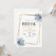 Blue Flowers Brautdusche Einladung mit Goldrahmen : Erleben Sie die Braut-zu-sein mit dieser eleganten und raffinierten Brautdusche-Einladung. Dieses Design besticht durch wunderschöne blaue Blumenakzente und einen luxuriösen Goldrahmen. Freuen Sie sich auf zeitlosen Charme und Raffinesse. Die Kombination aus blauen und metallischem Gold schafft ein elegantes und stilvolles Ambiente, das sich perfekt für ein Brautparty mit einer Touch Glamour eignet. Individuell gestaltbarer Text sorgt dafür, dass Ihre Veranstaltungsdetails so präsentiert werden, dass sie das Design ergänzen. Das Hotel eignet sich ideal für moderne, romantische oder klassische Brautpartys.
