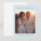 Diese Hochzeits-Dankeskarten zeigen ein warmes, intimes Foto eines Paares vor einem Sonnenuntergangshintergrund, das eine romantische und herzliche Atmosphäre schafft. Das Design enthält eine elegante Schrift-Typografie für "Love & Thanks" oben, während saubere Serifenschriften für anpassbare Namen und das Datum unter dem Bild verwendet werden. Die weiche Creme- und Beige-Farbpalette ergänzt die goldenen Farbtöne der untergehenden Sonne und verstärkt das allgemeine ruhige und feierliche Gefühl. Perfekt zum Ausdruck von Dankbarkeit nach einem besonderen Anlass, bieten diese Karten durch ihren realistischen Darstellungsstil und die ausgewogene Komposition eine persönliche Note.