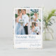 Romantisches Dusty Blue Watercolor Foto Hochzeitsgrössen Dankeschön Auf den Karten finden Sie staubblaue Zeleste- und Delphinium-Blume mit Eukalyptusgrün und Schmetterlingen. Fügen Sie Ihre individuelle Danksagung in elegantem Kalligrafieschrift mit vier Ihrer Lieblings-Fotos hinzu. Für Sie entworfen von Evco Studio www.zazzle.com/store/evcostudio