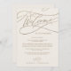 Diese romantischen Gold- und Elfenbeinkarten sind perfekt für eine einfache Hochzeit. Das moderne klassische Design besticht durch extravagante Wirbel und skurrile Schnörkel mit herrlich eleganten, handgezeichneten Imitaten, die auf Champagner-Goldfolie-Typografie setzen. Auf der Vorderseite der Karte befindet sich ein Begrüßungsschreiben, auf der Rückseite der Karte befindet sich der Hochzeitstag. Diese Noten sind ideal für Hochzeiten in Urlaubsort und Begrüßungstaschen für Hotelgäste. Bitte beachten Sie: Dieses Design enthält keine echte Goldfolie. Es ist eine hochwertige Grafik, die wie Goldfolie aussieht.