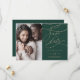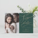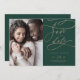 Diese romantische grüne Kalligraphie-Foto-Save the Date-Karte ist ideal für eine einfache Hochzeit. Das moderne klassische Design besticht durch extravagante Wirbel und skurrile Schnörkel mit herrlich eleganten, handgezeichneten Imitaten, die auf Champagner-Goldfolie-Typografie setzen.