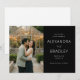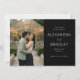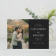 Diese Hochzeitseinladung zur Vorankündigung verfügt über ein geteiltes Layout mit einem romantischen Foto eines Paares, das sich vor einem warm beleuchteten Gewächshaus umarmt und eine intime und gemütliche Atmosphäre schafft. Die rechte Seite zeigt eleganten Text auf schwarzem Hintergrund mit anspruchsvollen Serifenschriften, die die Details des Ereignisses hervorheben. Die Farbpalette kombiniert natürliche Grün- und Brauntöne aus dem Laub mit warmen Gelbtönen von den Lichterketten und ruft ein klassisches und zeitloses Gefühl hervor. Perfekt, um den Ton für eine unvergessliche Feier zu setzen, findet dieses Design eine Balance zwischen visueller Attraktivität und klarer Kommunikation und ist somit ideal für Paare, die ihre besondere Nachricht mit Stil teilen möchten.
