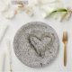 Herz auf sandigem Strand. Vervollkommnen Sie am romantischen Picknick.