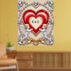Ein romantisches Kunstwerk mit Kirchenringen, mitten im Zentrum, umgeben von Edelsteinen und Perlen, das Liebe, Hochzeiten und Romantik symbolisiert. Ideal für Valentinthemen oder Hochzeitsthemen.