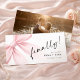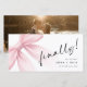 Teilen Sie Ihre Liebe mit einer Save-the-Date-Karte, die zart und bedeutungsvoll ist und mit einer rosa Schleife an der Vorderseite. Das romantische Foto und die elegante Schrift setzen einen warmen Ton und fangen die Aufregung ein, endlich dieses neue Kapitel gemeinsam zu beginnen. Mit seinem einfachen Lesezeichen-Layout und dem minimalistischen Stil bietet es eine herzliche und elegante Möglichkeit, Ihre Gäste in Ihre Geschichte einzuladen.