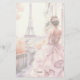 Dame, die nahe einem Fenster steht und zum Eiffelturm schaut. Anpassbarer Name.