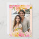 Mit diesem bezaubernden, handbemalten blumengeschmückten Hochzeitsfest-Foto verkünden Sie Ihren besonderen Tag. Das Design präsentiert einen hübschen Strauß von Aquarellfarben-Blume in lebhaften Pinks, sonnigen Gelbtönen und weichen Pfirsichen auf hellen Pfirsich. Diese Blumenillustrierung Set einen romantischen Ton, der die Einzelheiten der Hochzeit wunderschön in einem eleganten und modernen Drehbuch-Schriftart mit den Initialen des Ehepaares formuliert. Die Kartenrückseite mit einer persönlichen und herzlichen Touch und einem hübschen Foto des Ehepaares macht diese Einladung so einzigartig wie Ihre Liebe.