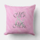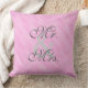 Romantischer, rosa, weißer Aquarell-Hintergrund umkehrbar Wedding Throw Kissen mit den Braut- und Bräutigamen und dem Hochzeitstag. Der Kissenvorhang hat den Wortlaut von Herrn und Frau in grauem Text. Personalisieren Sie Ihre Hochzeitsdetails. Zurück von Kissen hat den Wortlaut, glücklich heiraten mit Braut und Groom's First Names und Datum der Hochzeit in weißem Text. Original Artwork Design von TamiraZDesign.