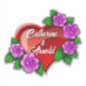 Romantisches rotes Herz mit rosa Rosen Aufkleber
