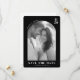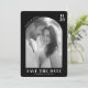Diese Save-the-Date-Hochzeitskarte zeigt ein klassisches Schwarz-Weiß-Foto von zwei Personen, das eine intime und romantische Atmosphäre schafft. Das Design umfasst elegante Serifenschriften für Namen und eine fette Typografie für "SAVE THE DATE", was Klarheit und Raffinesse gewährleistet. Durch ausreichend negativen Raum und eine monochrome Farbpalette ist das Layout ausgewogen und zeitlos, perfekt, um die Vorfreude auf einen besonderen Anlass einzufangen. Anpassbare Elemente ermöglichen eine Personalisierung für Namen, Daten und Orte, was es zu einer idealen Wahl für Paare macht, die ihren großen Tag planen.