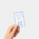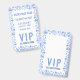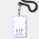 Ein Gästetisch mit VIP-Pass, der Ihre Veranstaltung ankündigt, mit einem leeren Rücken, um den Namen und die Tischnummer Ihres Gastes zu schreiben. Das Abzeichen ist aus Kunststoff, daher wird empfohlen, eine dauerhafte Markierung wie eine feine Spitze Sharpee zu verwenden, und jedes Abzeichen muss vor der Handhabung vollständig trocken sein.